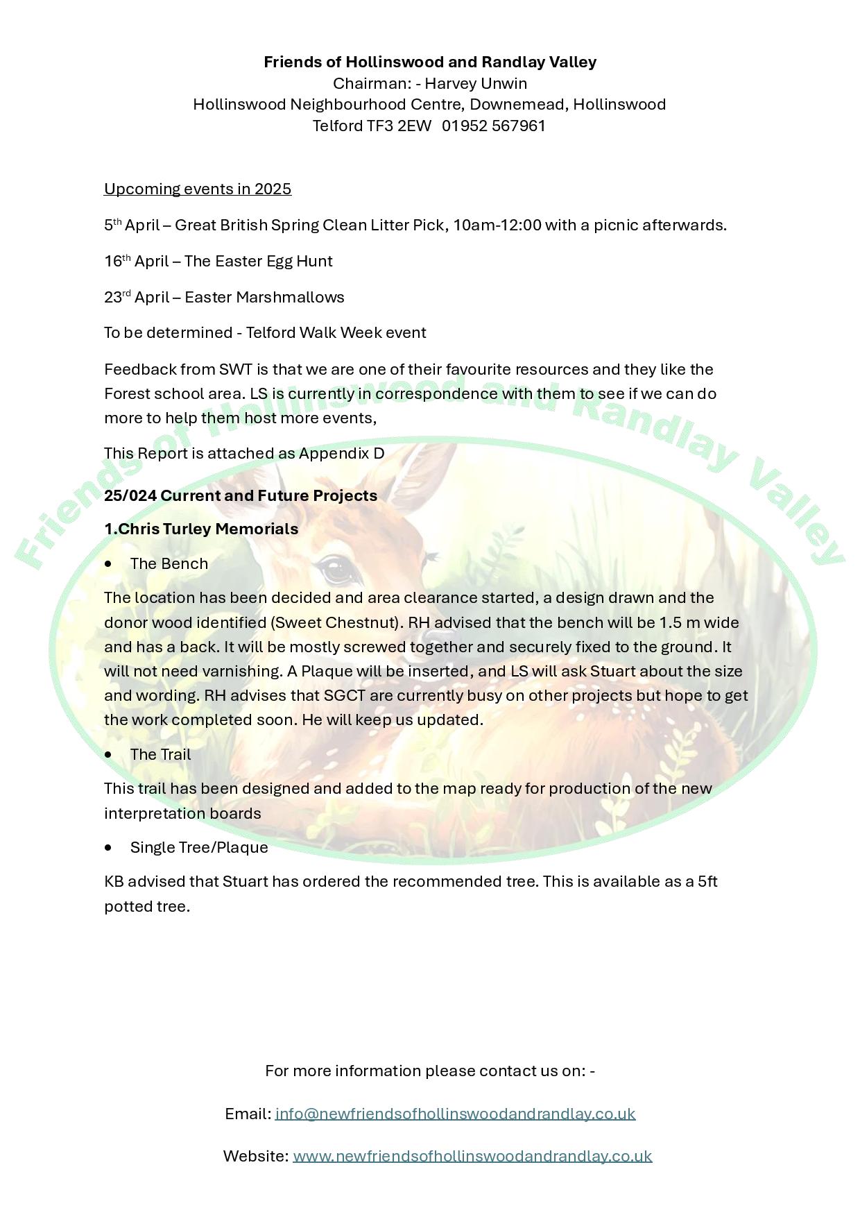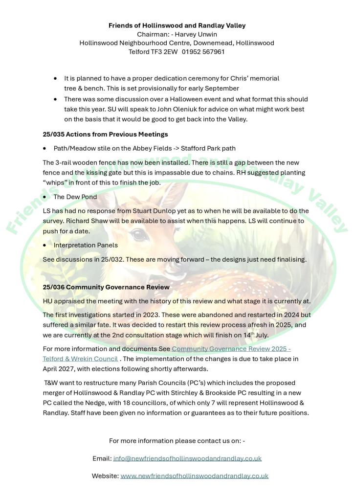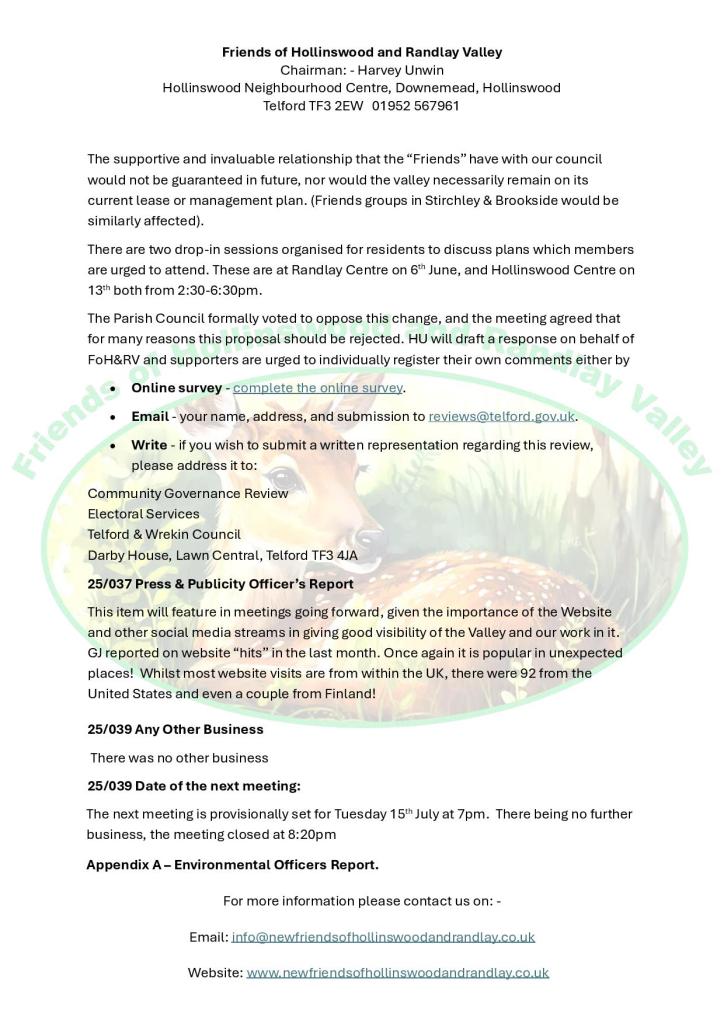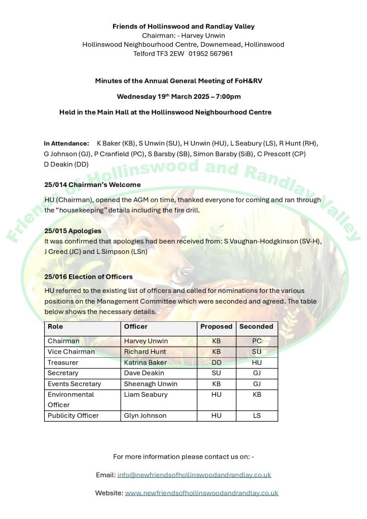 Hi all the Next FOHARV meeting is being held at Hollinswood Neighbourhood Centre at 7.30 on the 15th July