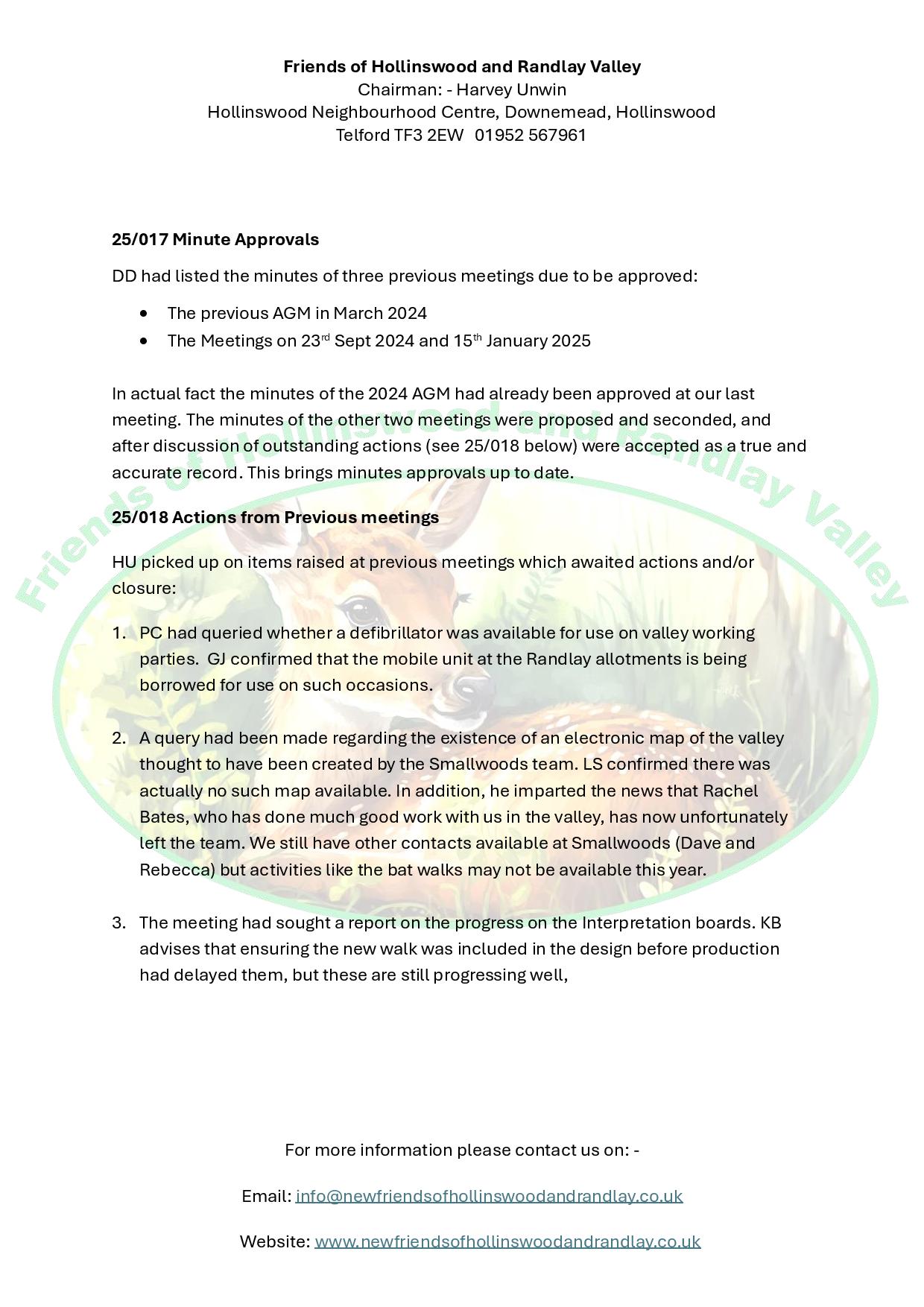 Minutes of the meeting held on 15th January 2025
