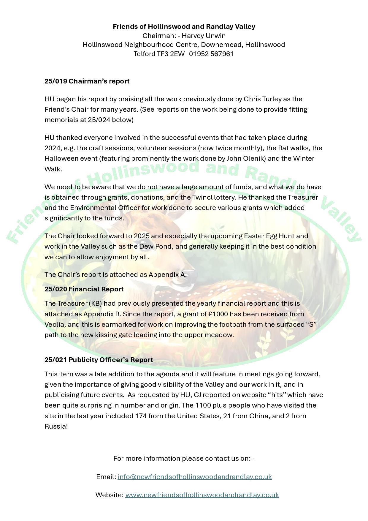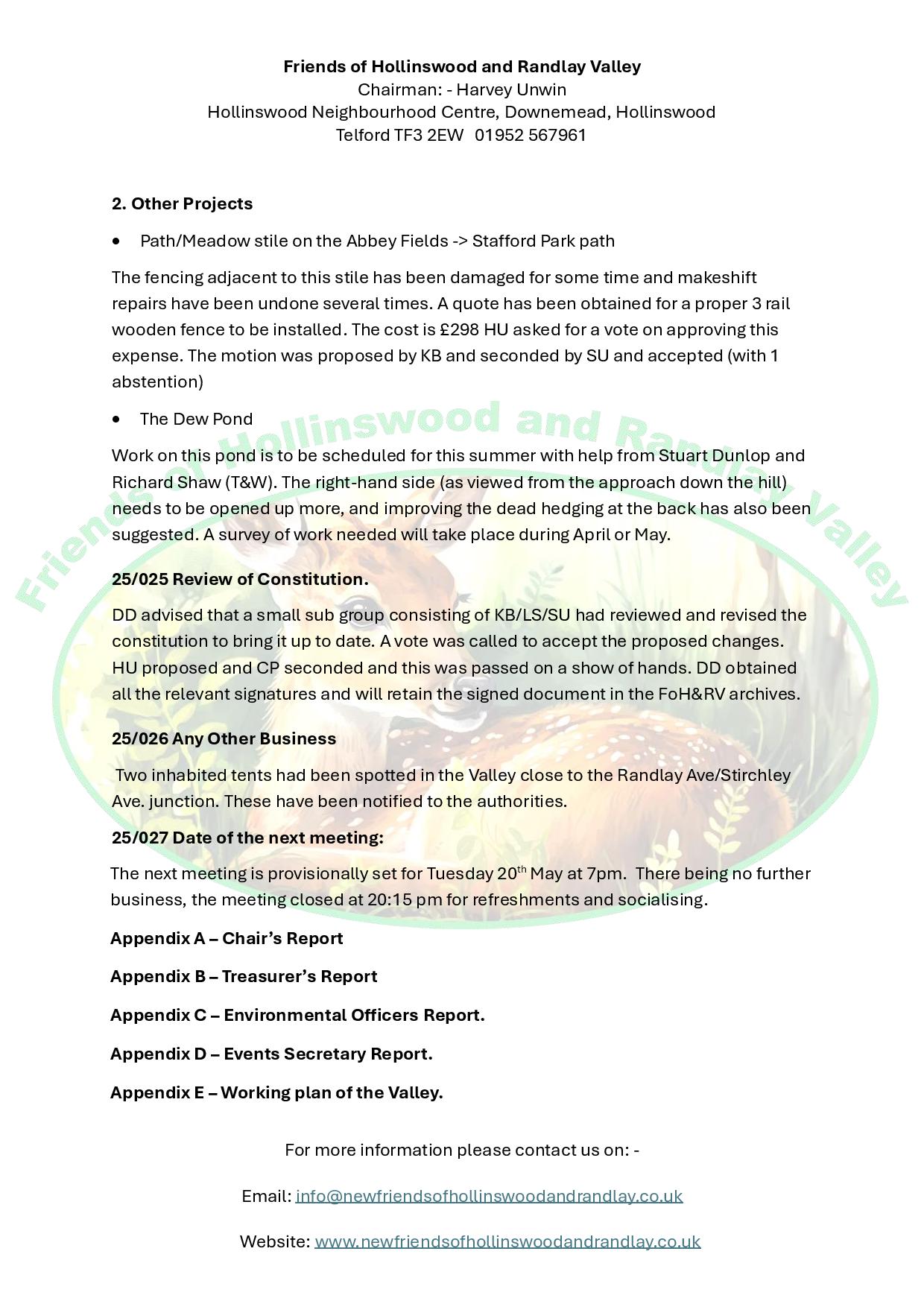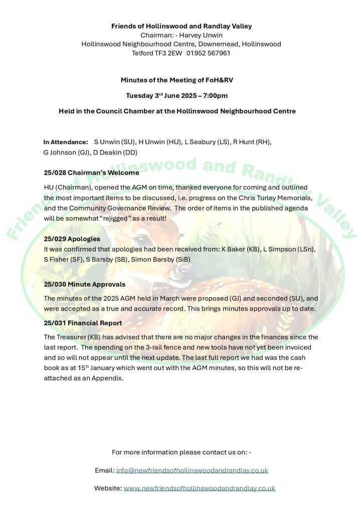 Minutes of the Meeting of FoH&RV