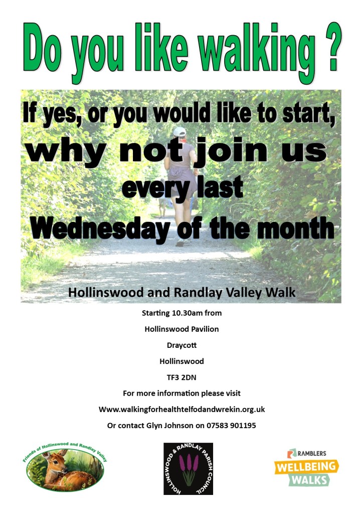 The Friends of Hollinswood and Randlay Valley are pleased to announce that we will be introducing Wellbeing Walks in the New Year.